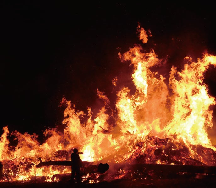 高さ30mを超える大松明はあっという間に夜空を焦がす炎となります。