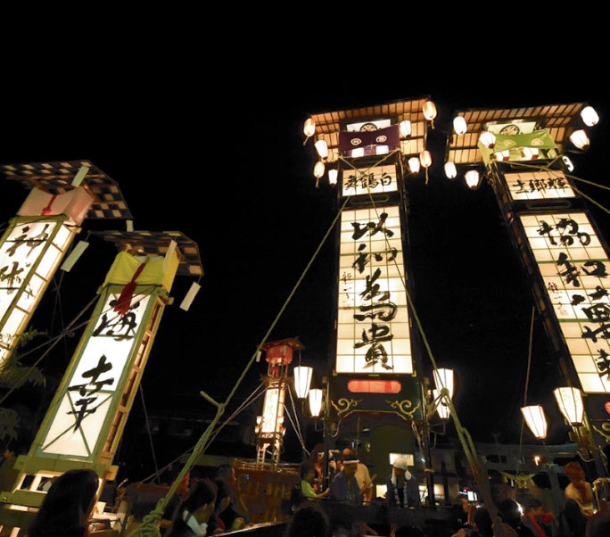 サキドラ、カマヒバシ、シンドラ、ハヤシカタ、アトドラという名前のついた五基の奉燈が宮前から崎山広場へと厳かに曳かれる様子は、灯りが揺れ幻想的な美しさを放ちます。