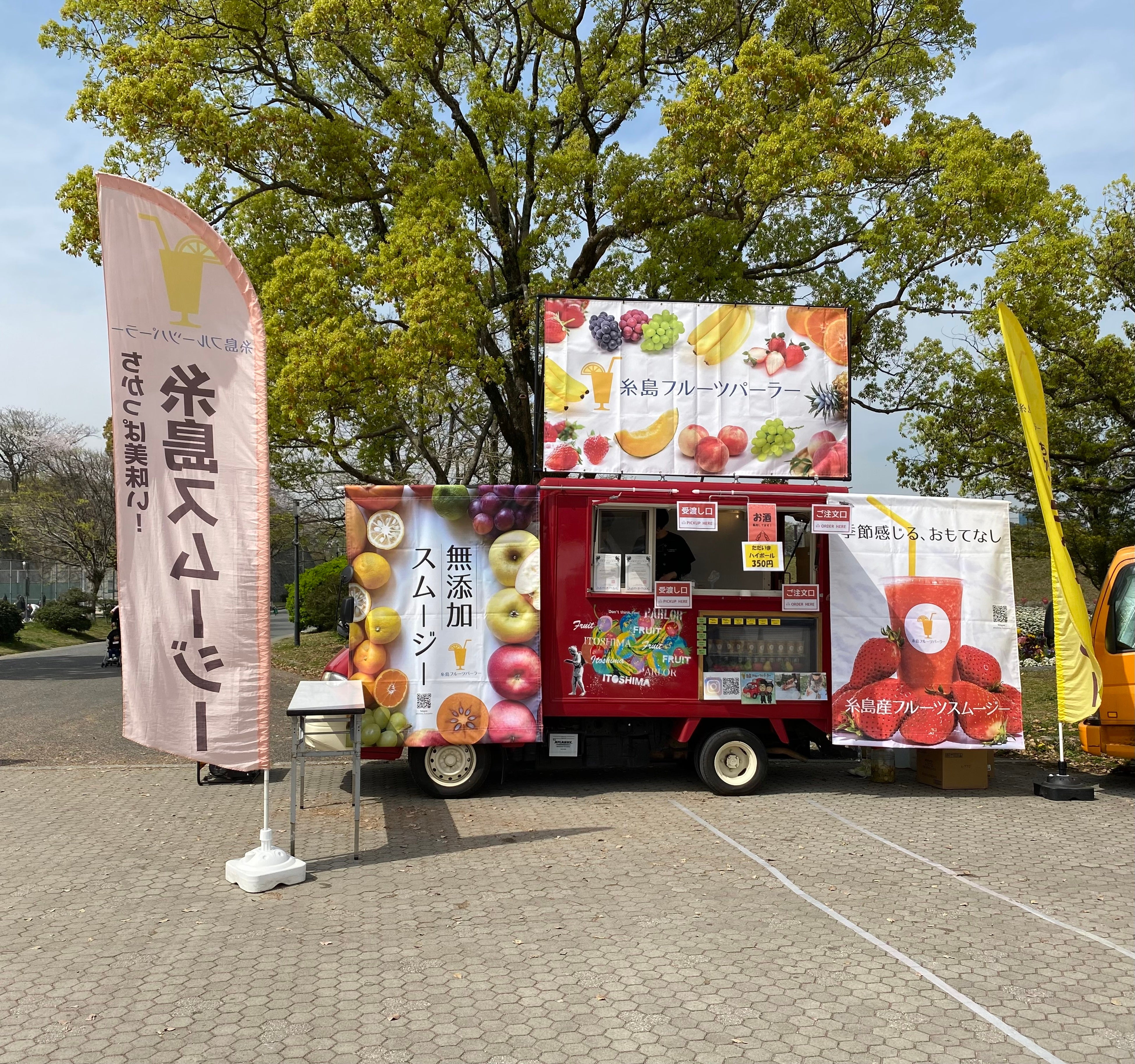 糸島フルーツパーラー(キッチンカー)出店します‼︎糸島農家直送の厳選フルーツを使った、生スムージーを販売いたします。