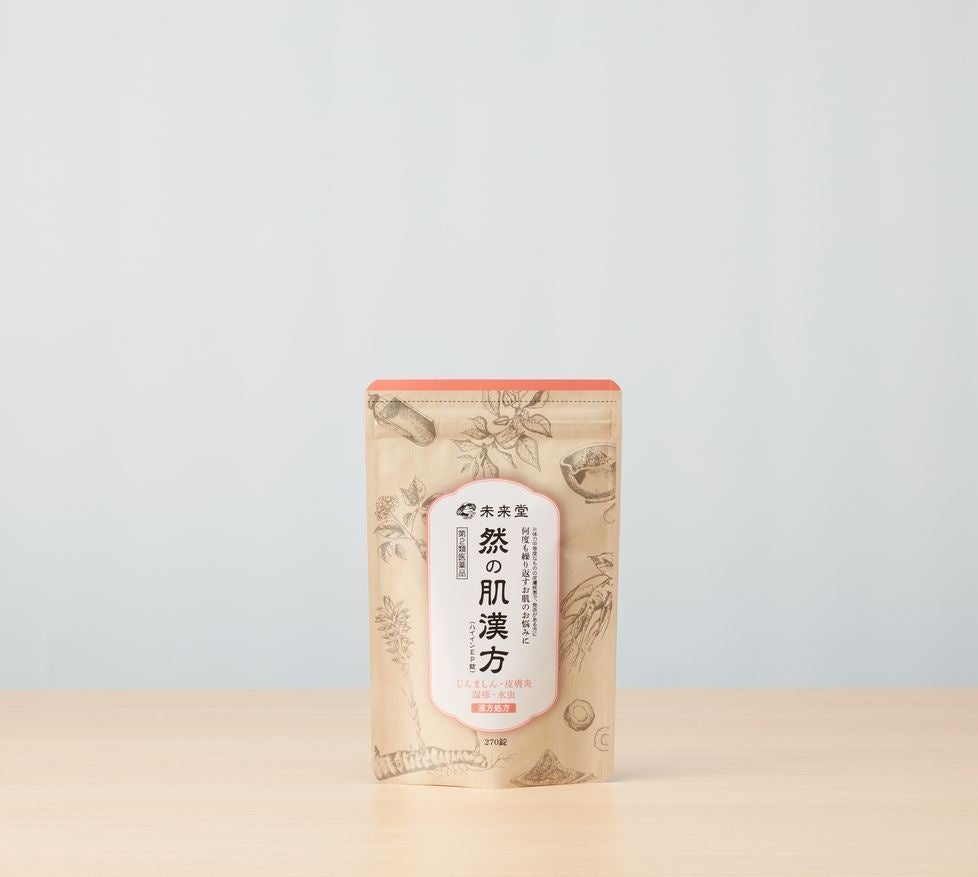 そんな蕁麻疹(じんましん)・皮膚炎・湿疹のお悩みを何とか解決したいという思いから、私たちは自然由来の生薬のチカラで、体の中から根本改善を目指す「漢方」に着目しました。漢方のチカラで自己回復力によって体の中から整えるアプローチです。その考え方の元、熟慮の末に完成したのが漢方薬の「然の肌漢方(ハイインEP錠)」です。