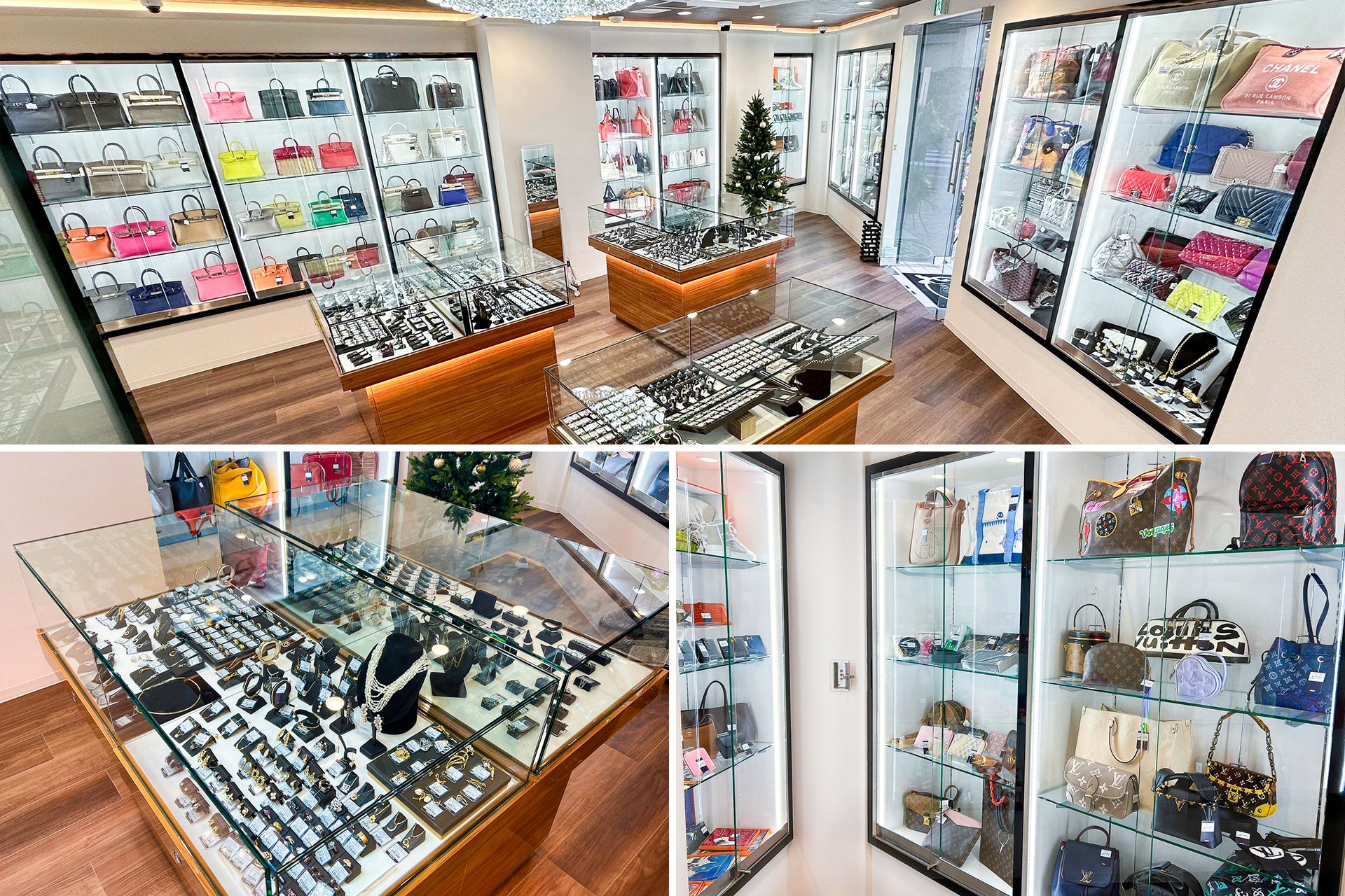 ルイ・ヴィトン、エルメス、カルティエ、シャネル、ブルガリ、グッチ、ロレックス等のブランドをはじめ、宝飾品や時計、金やプラチナなどの販売、買取