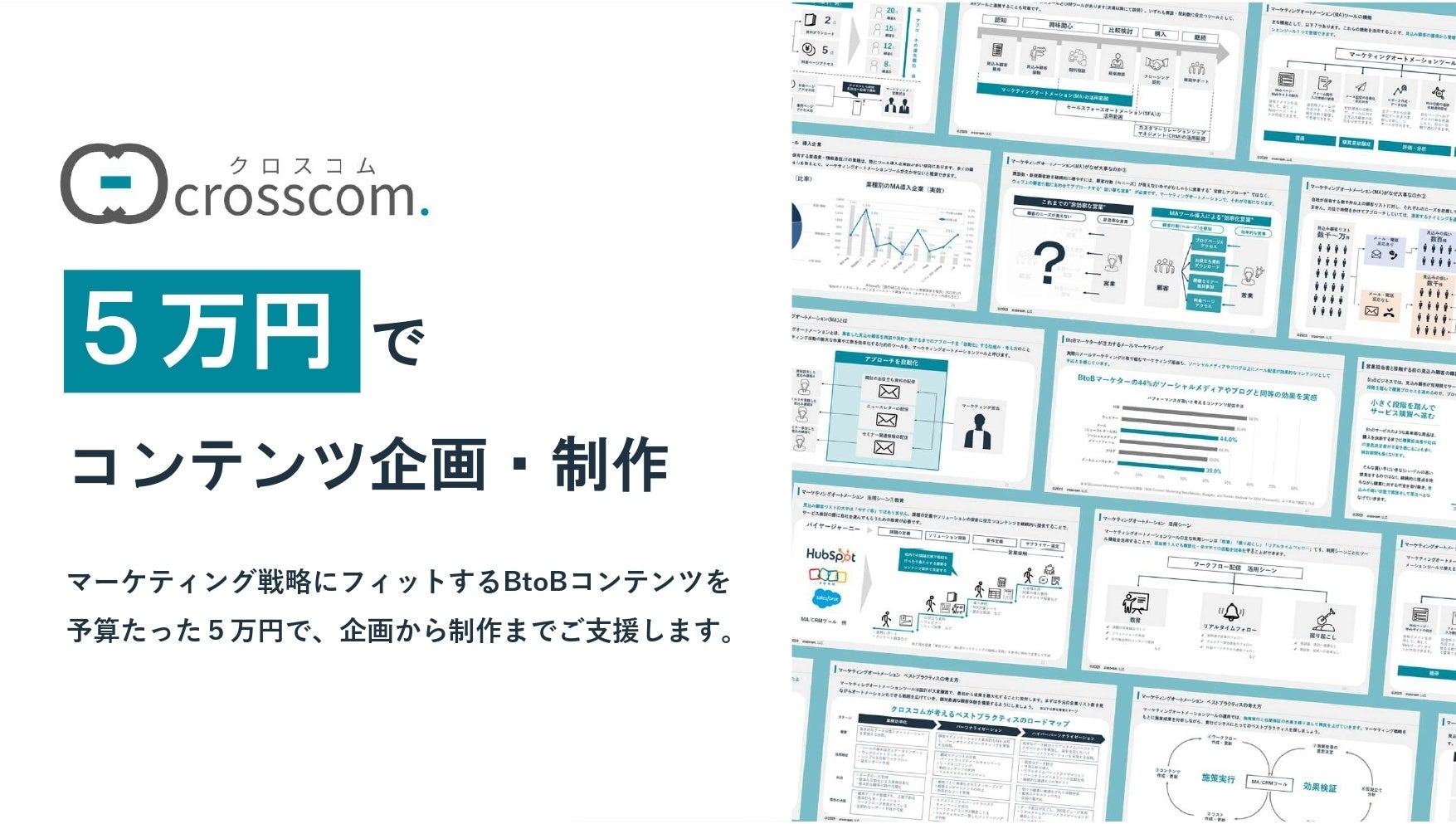 BtoB特化型のCRM導入・運用支援を行う合同会社クロスコム(東京都渋谷区、代表:本田正憲)は、MA(マーケティングオートメーション)・CRM(顧客関係管理)ツールを導入する中小企業を伴走支援するため、2024年9月5日に新サービス「5万円でコンテンツ企画・制作」をリリースしました。