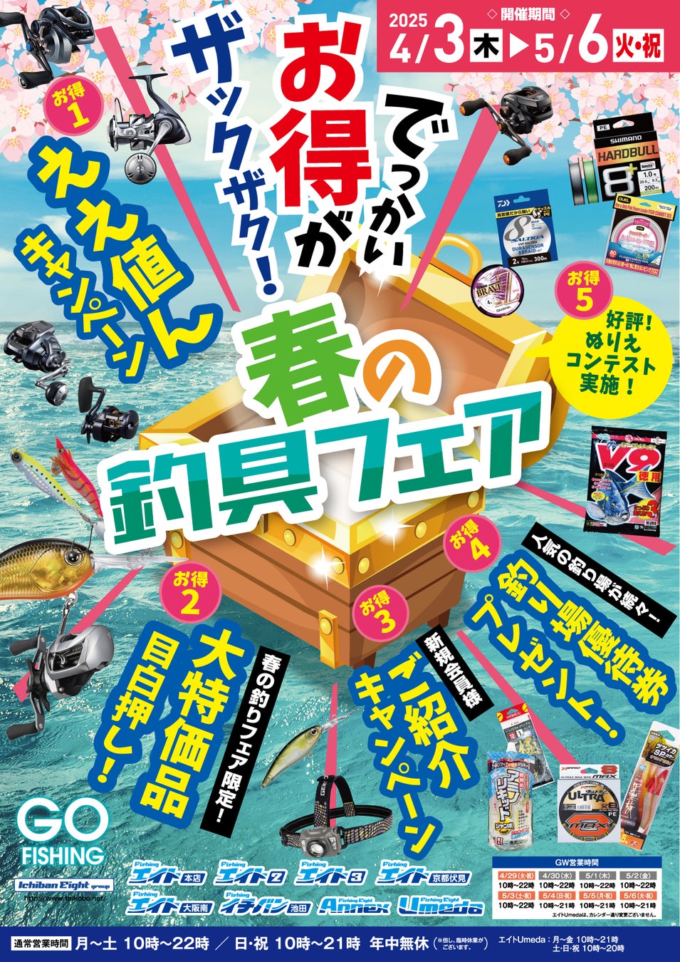 関西最大級の品揃え、イチバンエイトグループでは、「春の釣具フェア」を4月3日より開催!