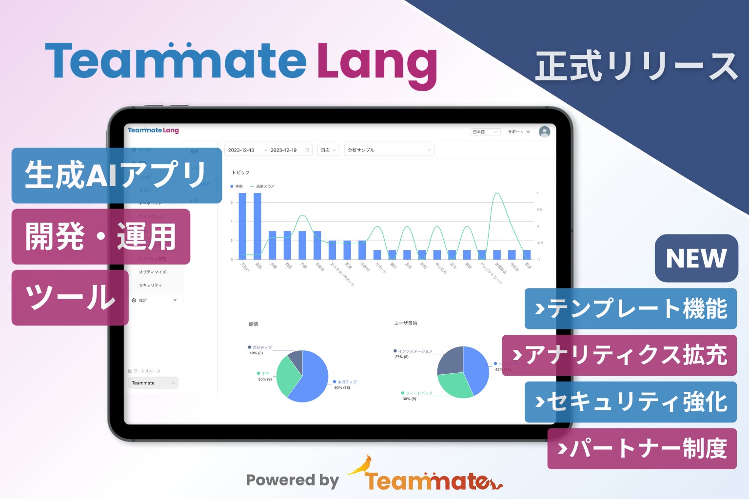 生成AIアプリの開発・運用を効率化するエンジニア向けツール「Teammate Lang」が複数の新機能を追加し12/20より正式リリース