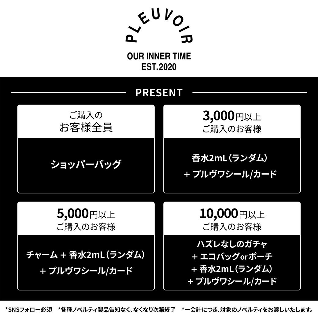 ④10,000円以上(税込)購入:はずれなしガチャ+エコバッグorポーチ+香水2mL贈呈(ランダム)+プルヴワシール/カード(ハガキ)贈呈