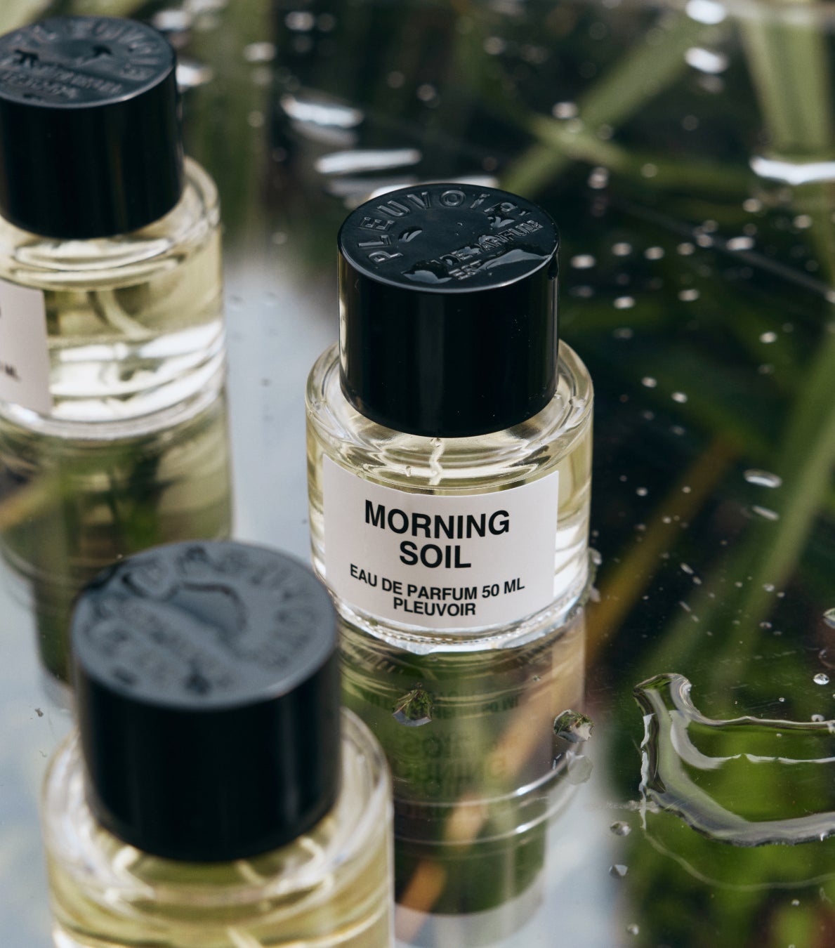 「降り注ぐ雨」という意味を持つプルヴワは、季節の終わりと始まりを告げる雨のように、雨上がりの森や土の香りを思わせるような、心と体の安らぎのための香りを取り入れています。
