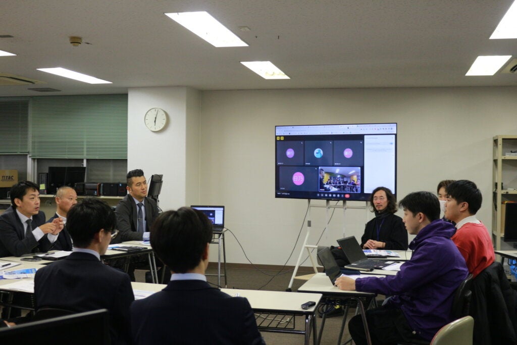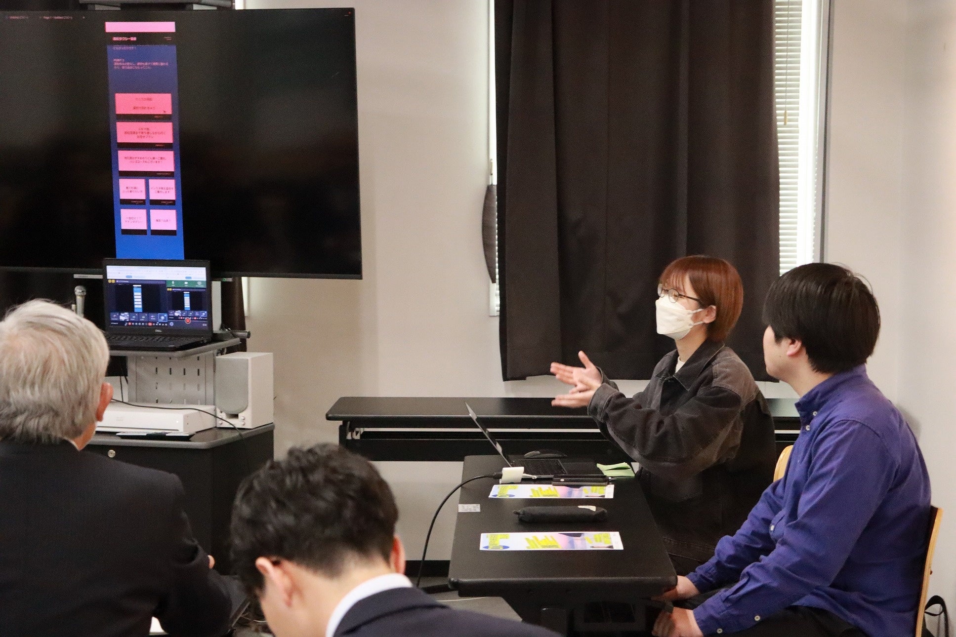 学生側の提案発表会。施策の構想はオンラインやコミュニケーションアプリなどを通じて情報交換が継続されました。そして進級前の課題制作や就職活動の合間を縫って学生らが考えたアイデアが発表されました。