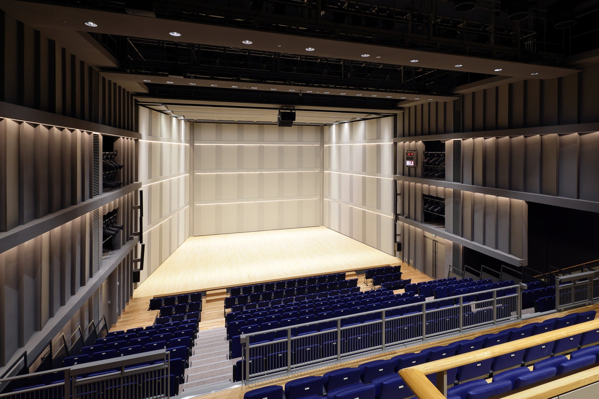 ■施設内容:大ホール(客席数1,105)、小ホール(客席数296)、展示室(1階)、ギャラリー回廊1,2階)オープンロビー、スタジオ(2階)、練習室(2階)、キッズコーナー、駐車場(屋外)