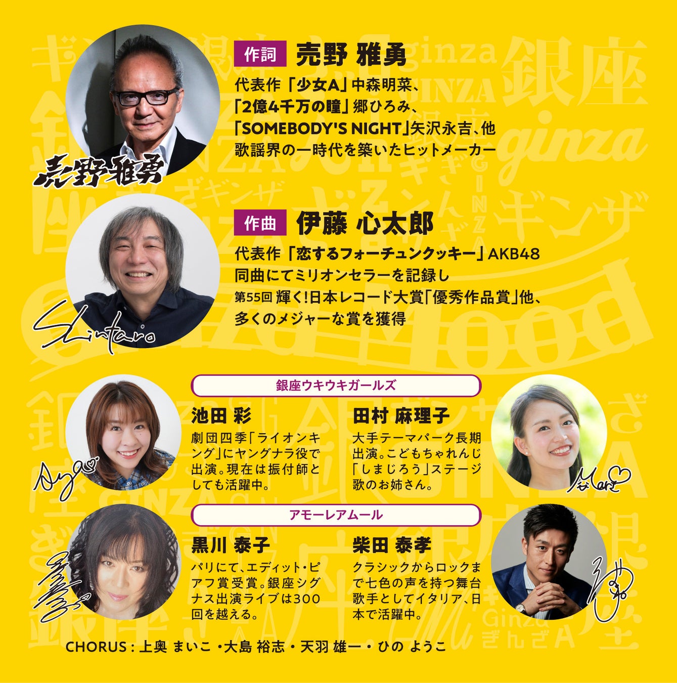 「新しい銀座の歌プロジェクト」は、このCDの完成を記念し、2024年10月27日(日)に銀座にて、売野、伊藤両氏出席のもと、メディア関係者の皆様に初めて新曲を披露するライブを開催いたします。