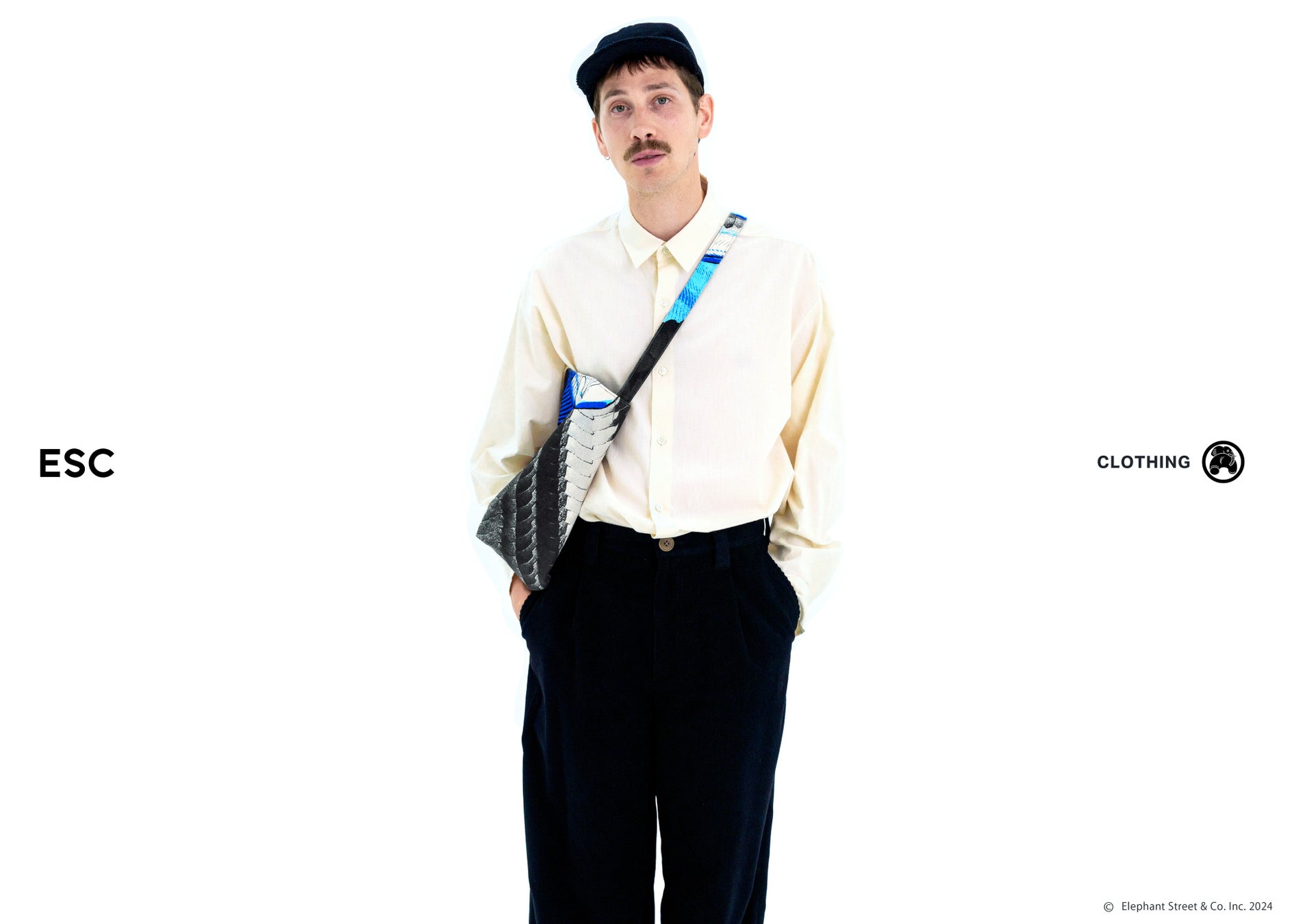 ESC JACKET、ESC PANTS(AW25コレクション)、ESC PRINTED LONG SLEEVE SHIRT(SS26コレクション、女性モデル着用)の製品詳細は後日ESCブランドサイトにて公開いたします。