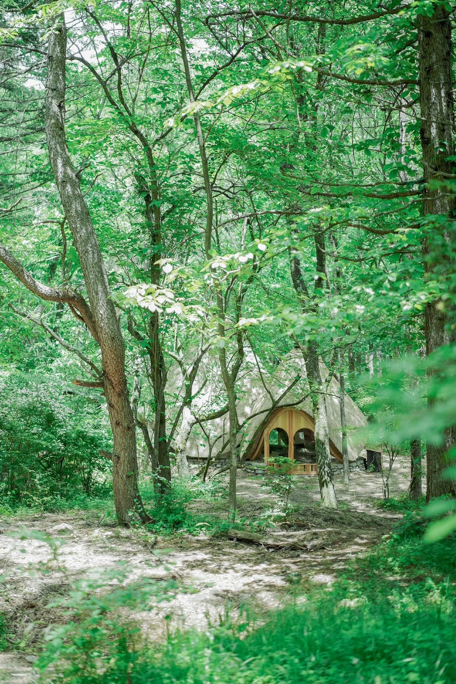 「没頭と解放」というテーマのもと、建築という“作為”そのものとどう向き合うか。 自然とはどんな感覚なのか── そんな問いを抱えながら、この場所は、森の声や人との関係性の中で少しずつ形づくられていきました。