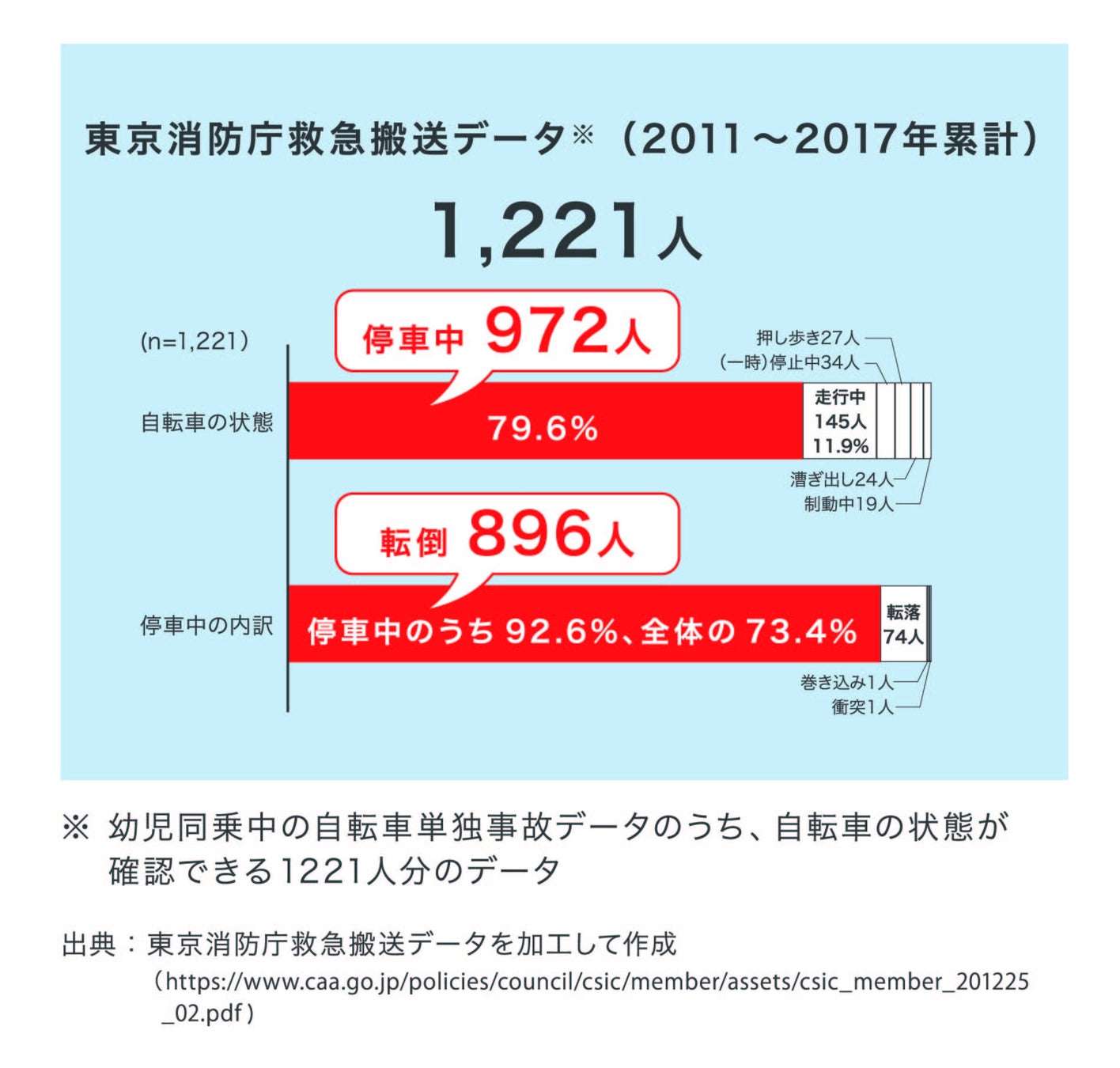 子ども乗せ自転車での万一の転倒時、子どもの頭部の重症化リスクを約80%軽減