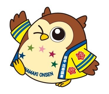 胸の5つ星は、花巻温泉の4つの宿泊施設とバラ園を表しているんだホ。
