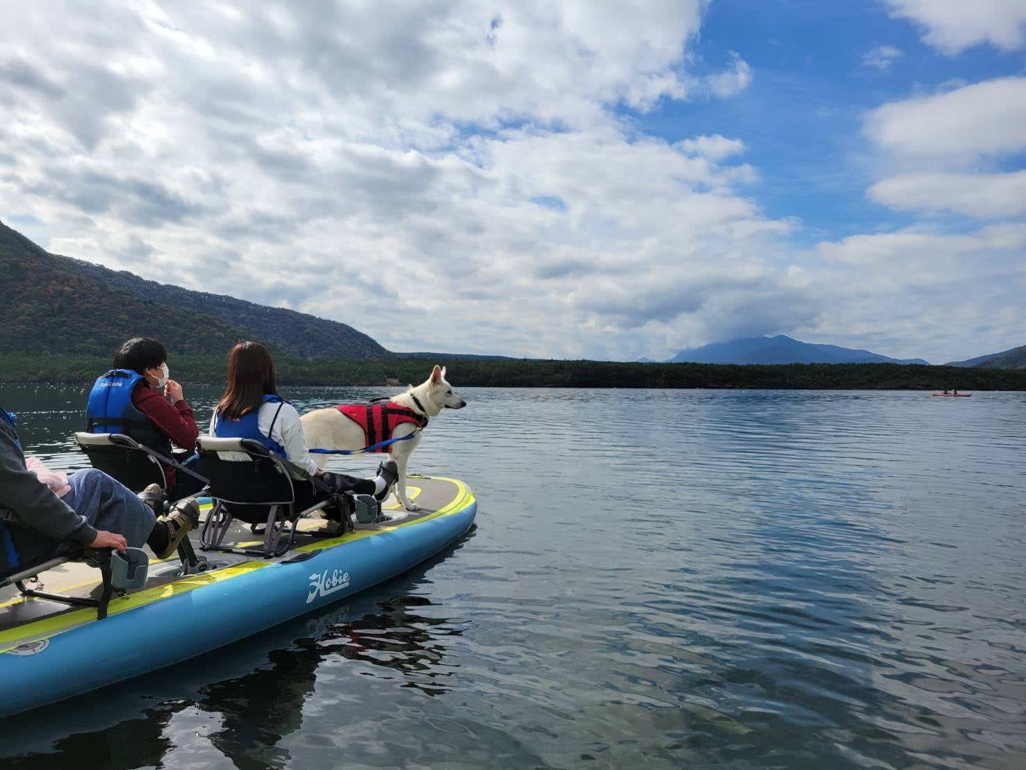 会場で手に入れたフードやドリンク持参で乗れ、湖上で愛犬とカフェタイムを満喫することができます。