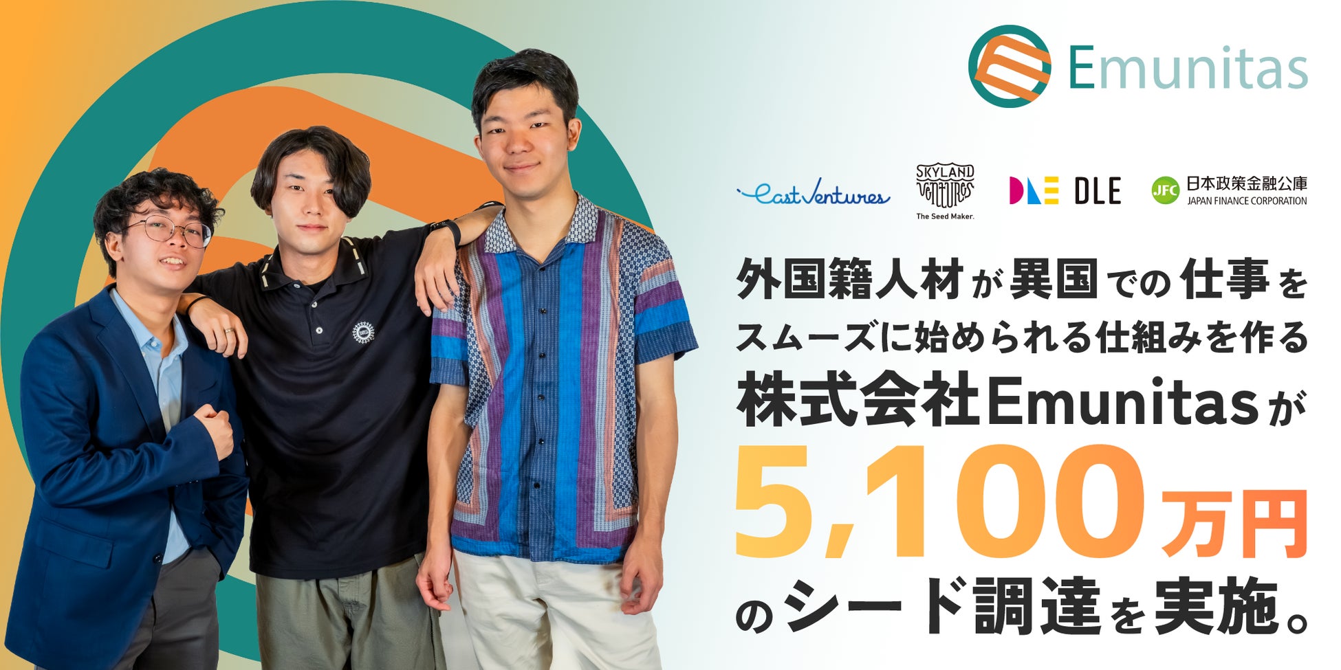 外国籍人材が異国での仕事をスムーズに始められる仕組みをつくる株式会社Emunitasが、5,100万円のシード調達を実施