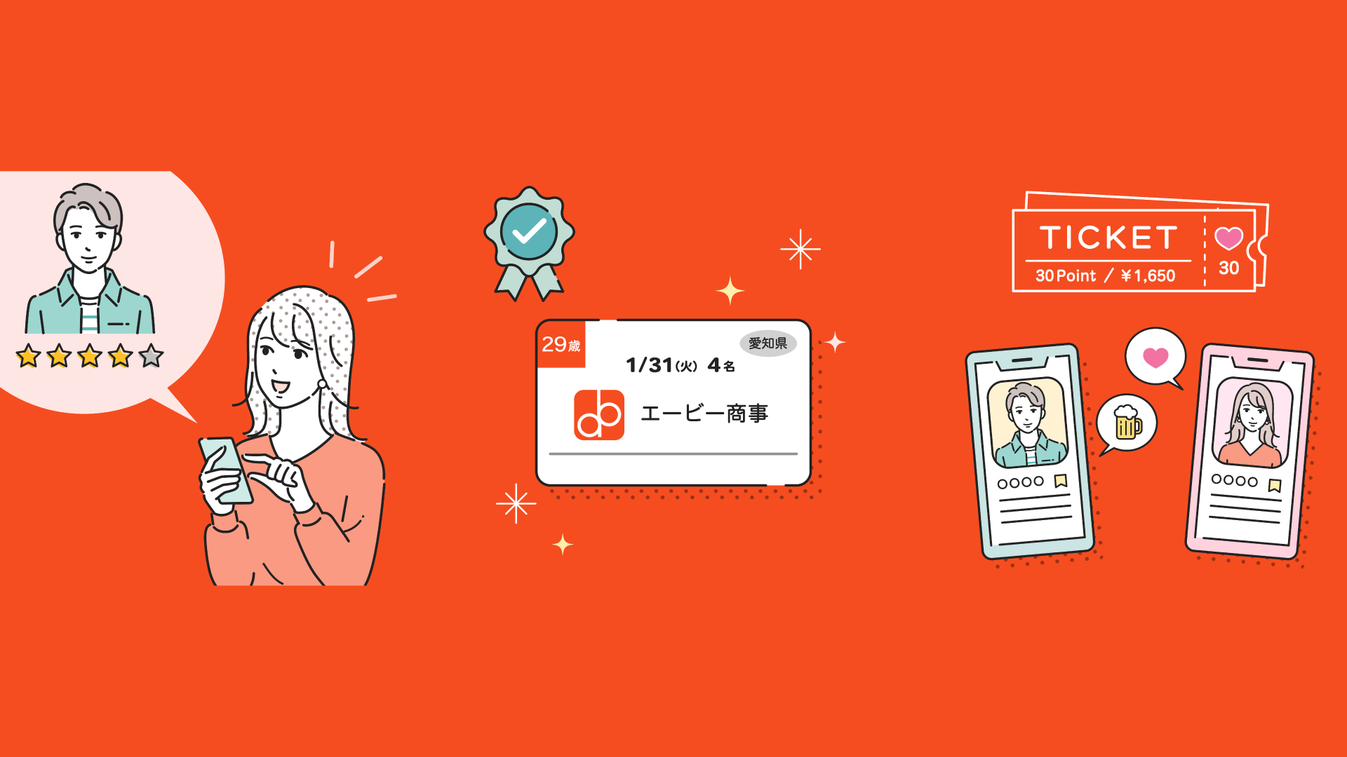 合コンやデートが「楽しかったか」を基準に、評価と口コミを投稿することができる機能です。