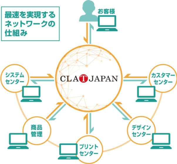 お客様の最適な納期を実現するため、 ご注文をお受けするカスタマーセンターやデザインセンター、プリント部門の各機能が、ネットワークで情報を一元管理・共有しています。そのため、デザイン作成~お届けまでスムーズなご案内が可能です。