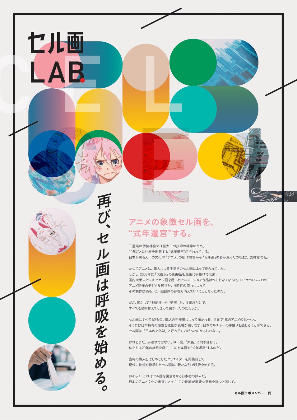 セル画におけるプロジェクトは、特殊な透明フィルムであるセルやセル絵具といった画材が失われた状況から立ち上がりました。