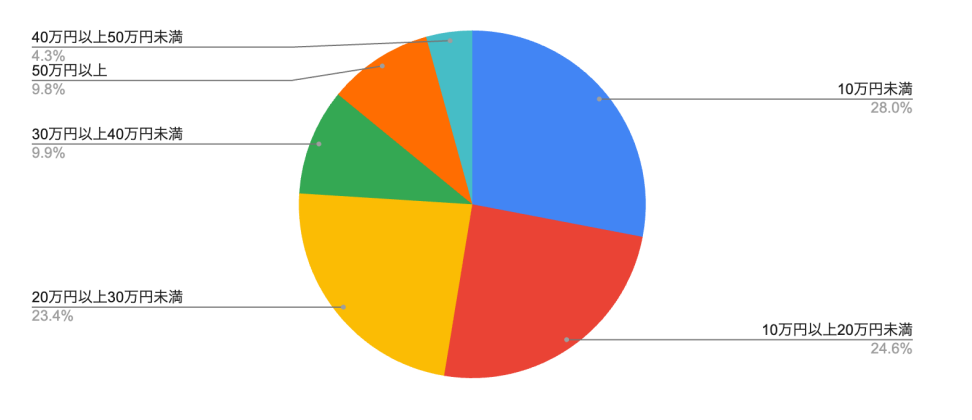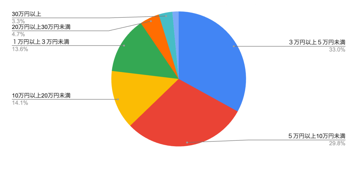 アンケート調査によると、10万円未満の方が28%と最も多く、30万円未満の方が合計で約76%という結果となりました。まとまった額を必要としている方も調査結果で見受けられました。