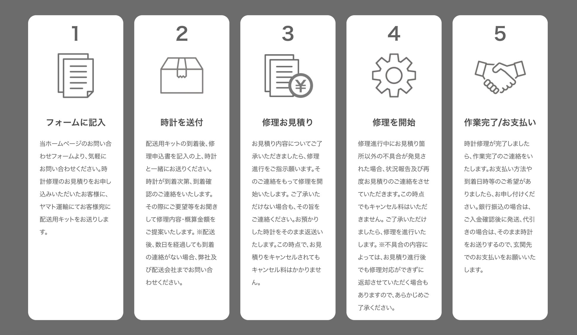 以上が、ご依頼からお客様のお手元に時計が戻るまでになります。