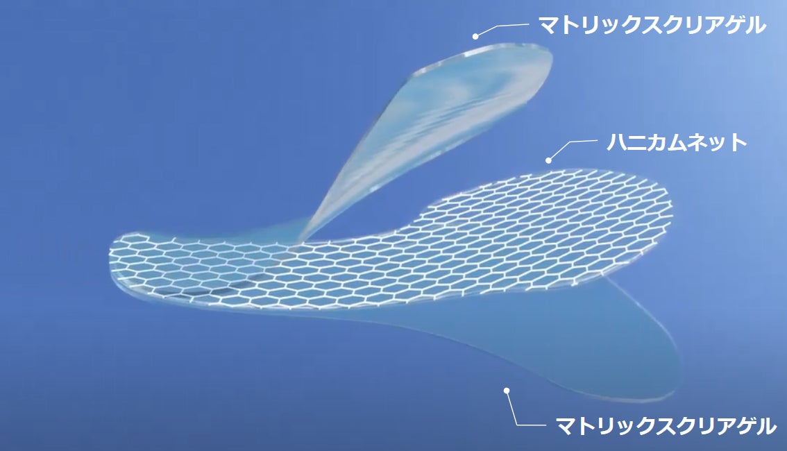 表面は2層のマトリックスクリアゲル、中央部分に伸縮性のハニカムネットが位置されています。