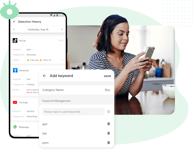 この革新的な機能は、親が常に子供のソーシャルアカウントを確認する必要を解消します。子供がソーシャルメディアで有害なコンテンツを検索、閲覧、または受信しているときに、自動的に親にアラートを送信し、子供のオンラインセーフティをリモートで確保し、適切で安全なコンテンツにのみさがすことを保証します。
