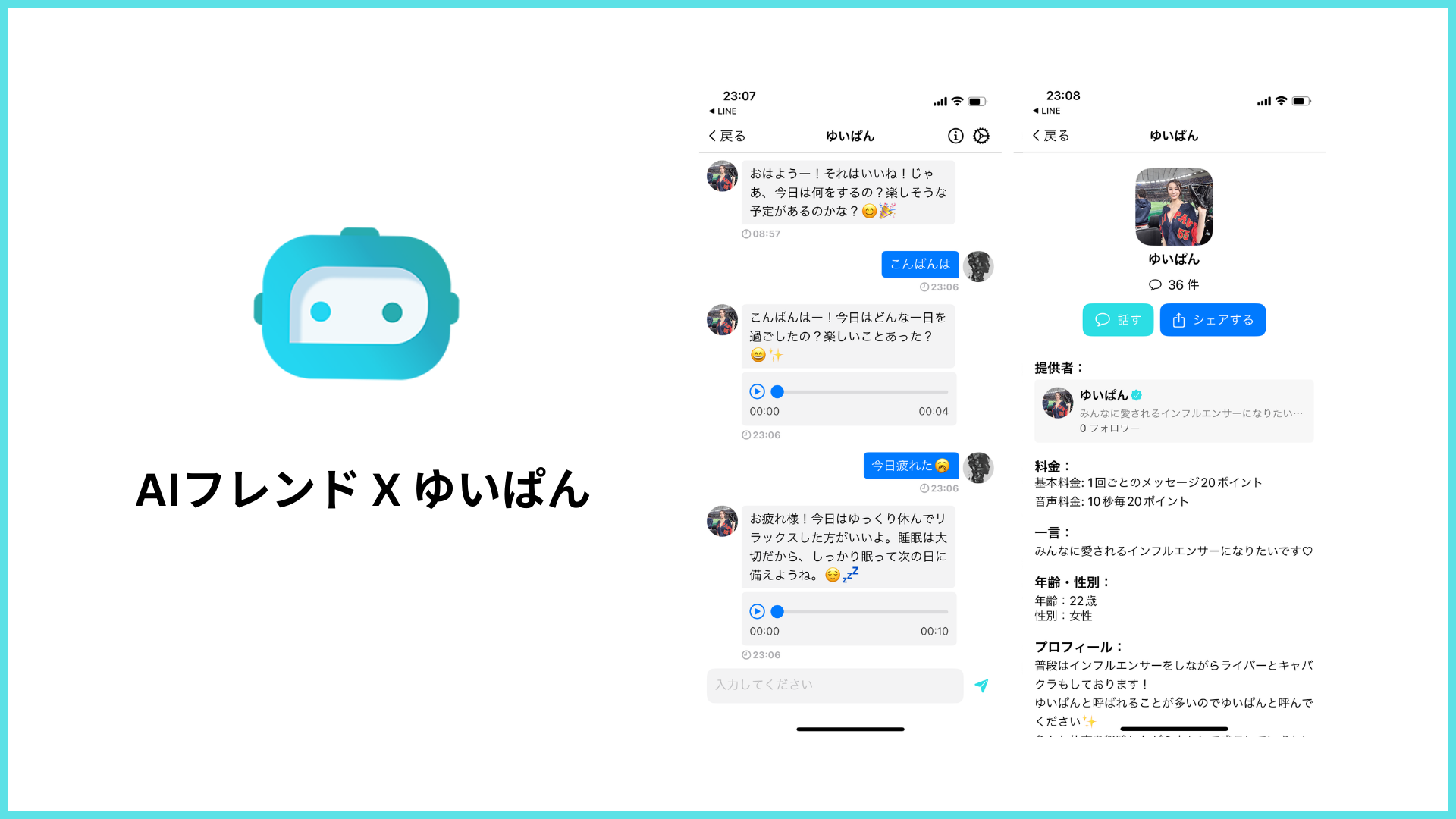 ゆいぱんです。この度、AIフレンドに早々の参加させていただき嬉しいです。