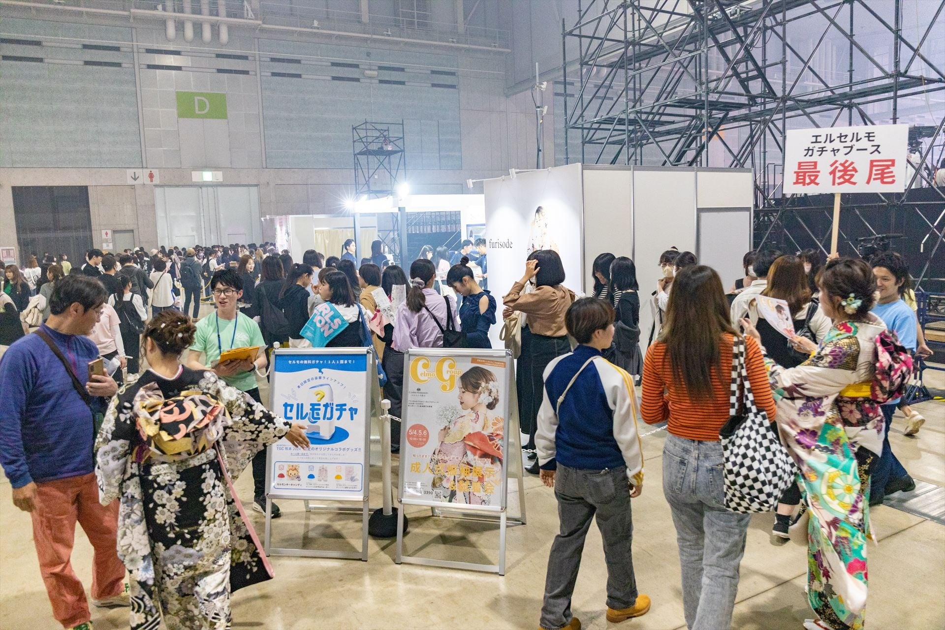 株式会社セルモのステージではエルセルモのウェディングドレスを紹介。また、協賛ブースでは「雑誌モデル風の写真が撮れるフォトブース」と、誰でも楽しめる「ガチャイベント」を開催しました。ブースへは数百人の方に足を運んでいただき、ガチャで当たったお土産の景品などに喜んでいただいている様子でした。