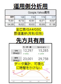 下記のように、運用側と顧客側に分けて毎日更新されるLooker Studioをオンライン共有して、運用を透明化しています。
