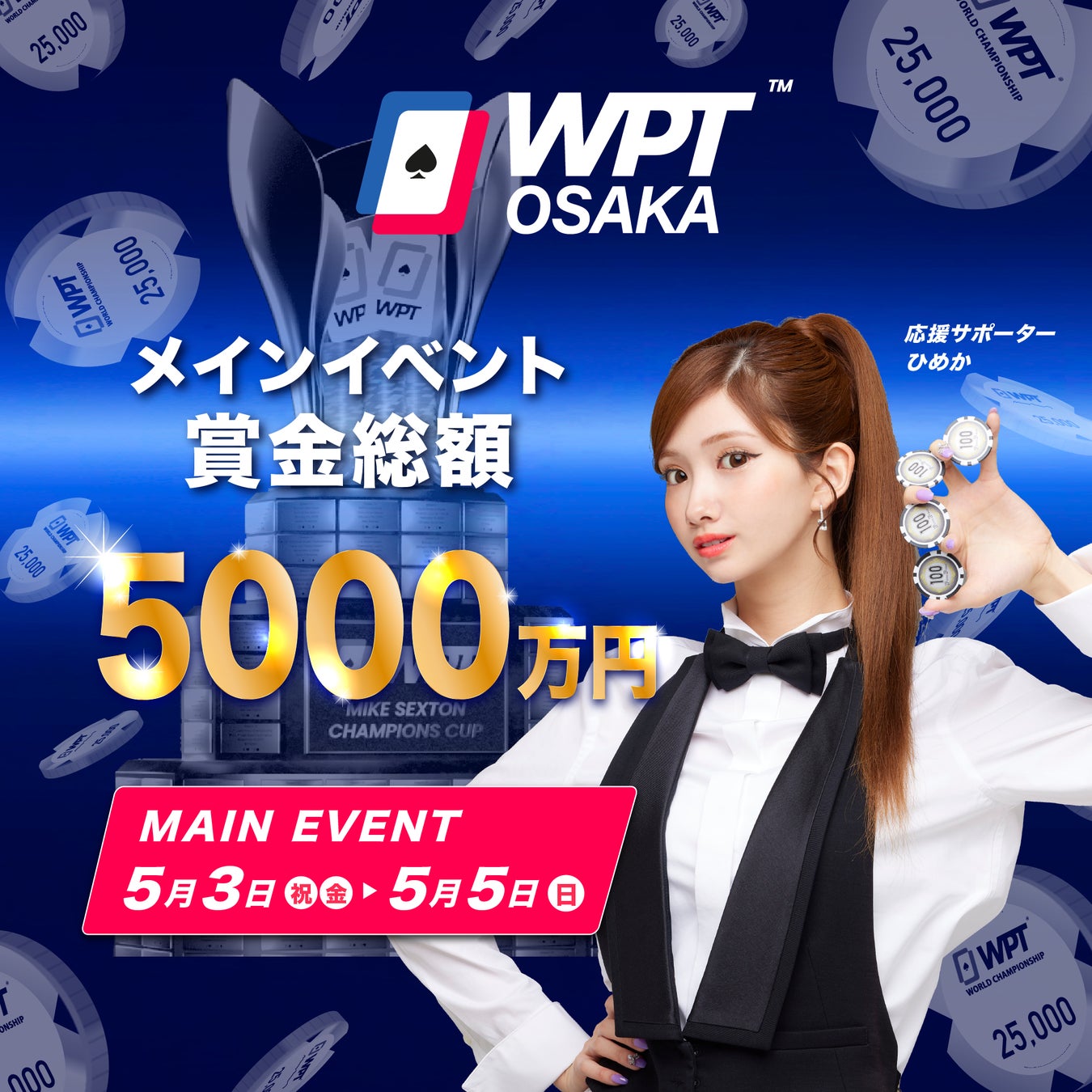 賞金総額5,000万円!世界三大ポーカー大会であるWPTが次回はゴールデンウィークの大阪で開催!「WPT大阪2024」【5月3日~5日】開催に関するご案内