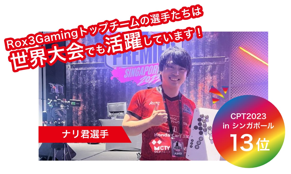 2023年10月に開催されたCAPCOM Pro Tour 2023 Offline Premier Singaporeではナリ君選手が13位タイで大会を終えるなど、世界大会にも出場しています。