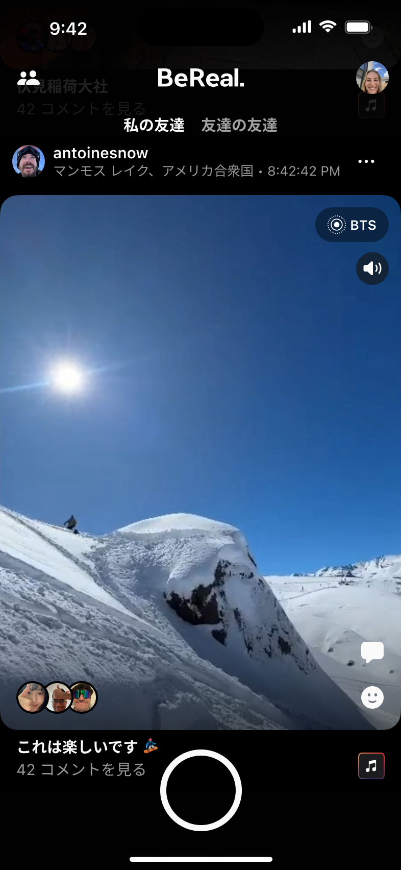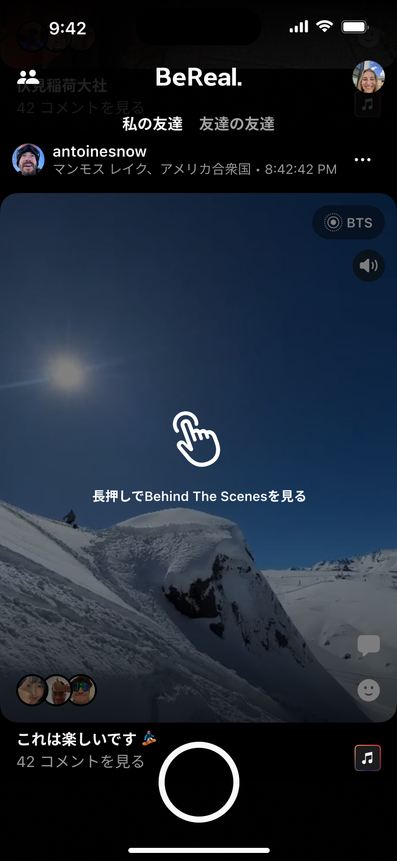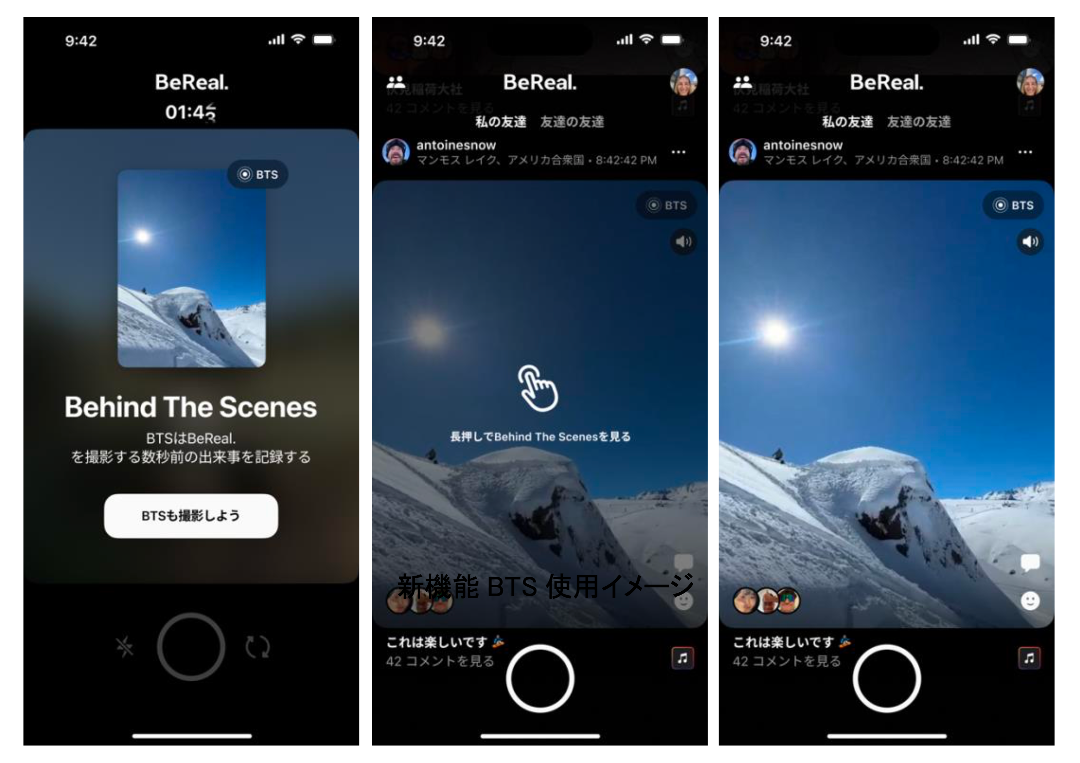 追加機能その①:友人のリアルを数秒視聴!「BTS (Behind The Scenes) 」