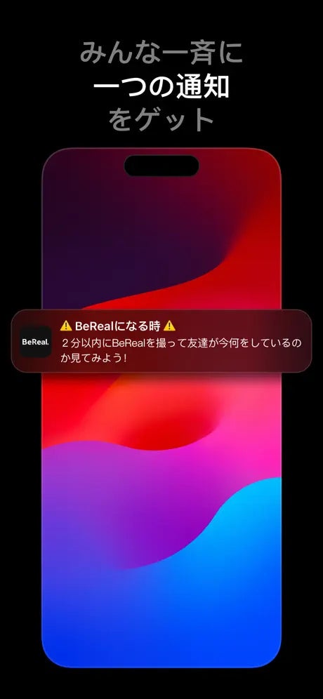 1日1回の投稿チャンスに対して、プッシュ通知は、毎日異なる時間に一斉に送信されます。毎日どのように時間が選ばれるかは秘密です。