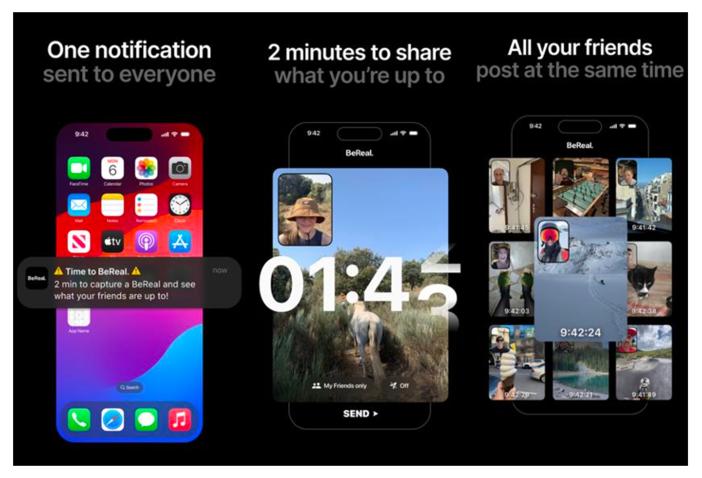 「BeReal」はリアルな生活が写し出され、フォロワーや「いいね!」、フィルターにこだわらないユーザーを自発性と信憑性で繋ぐアプリです。