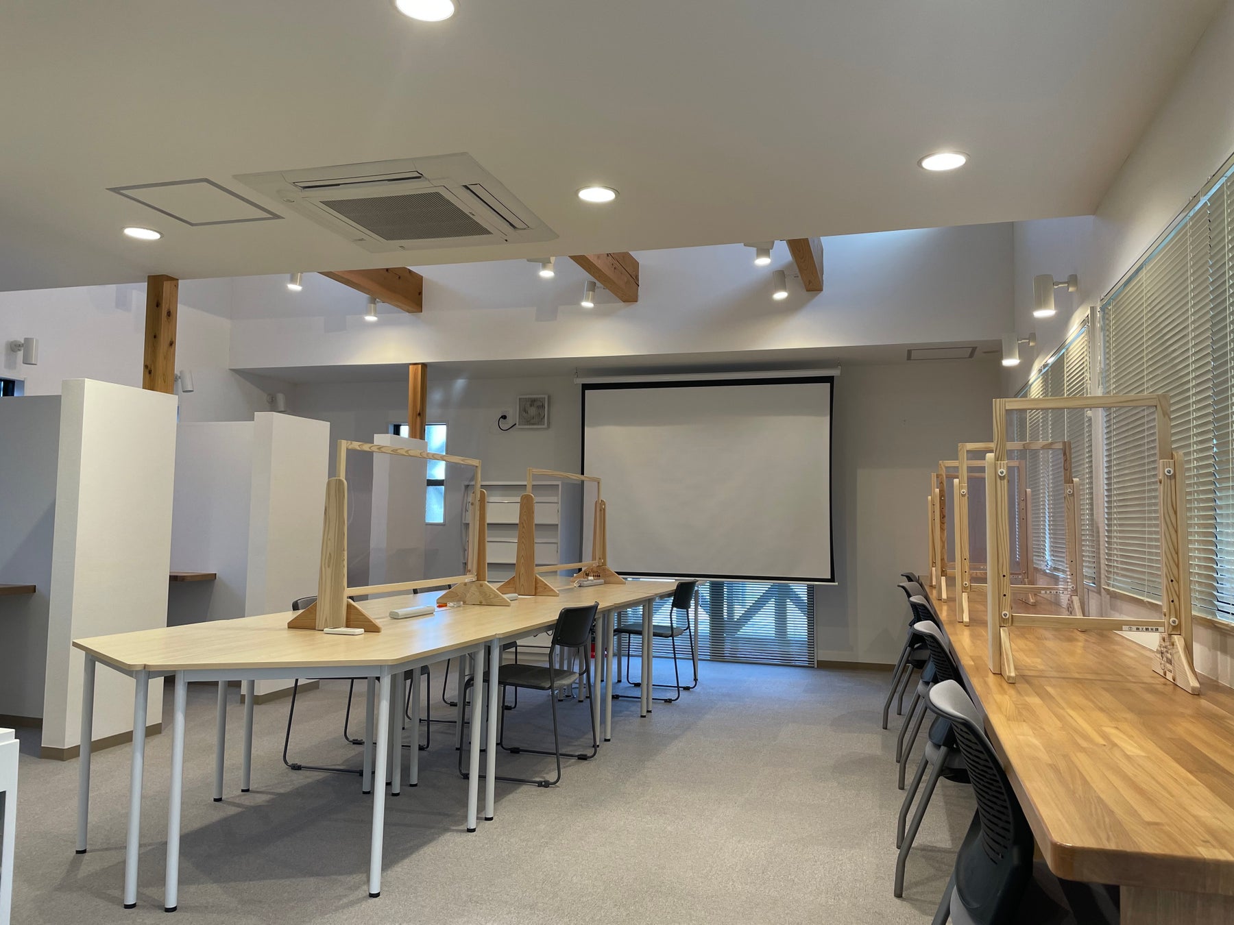 施設設備:高速Wi-Fi、無料駐車場、コピー機(有料)、ミーティングルーム設置、飲食持込OK