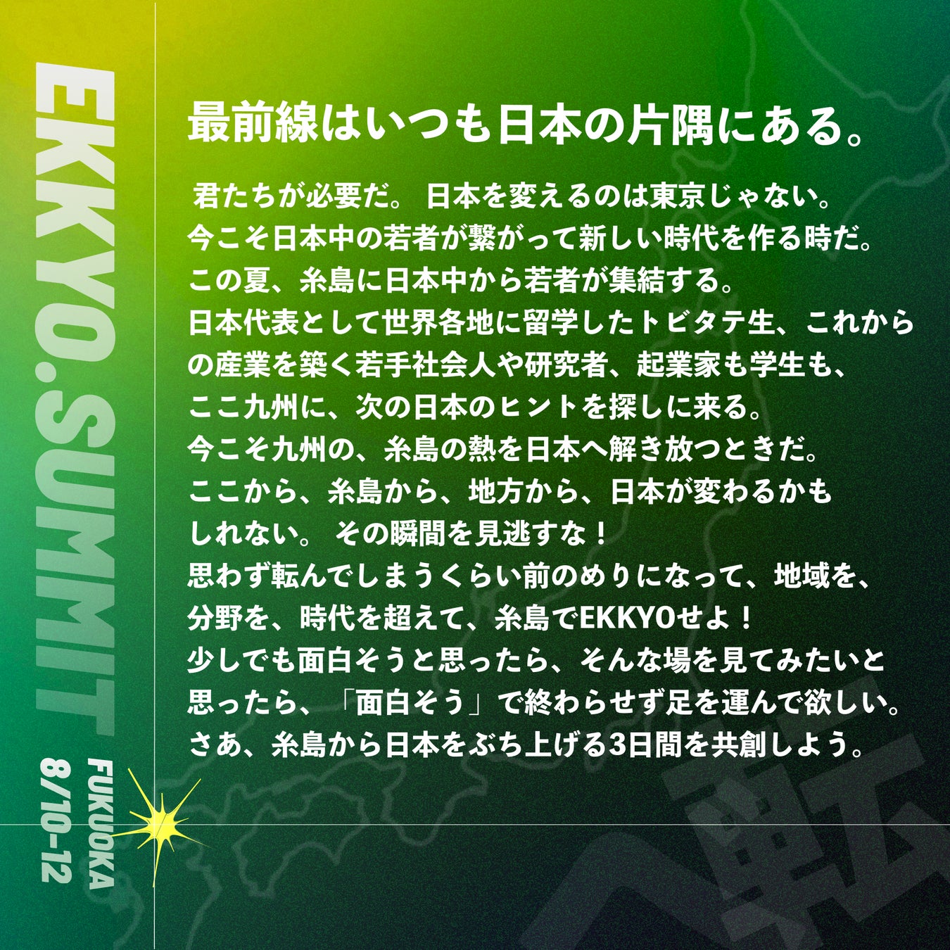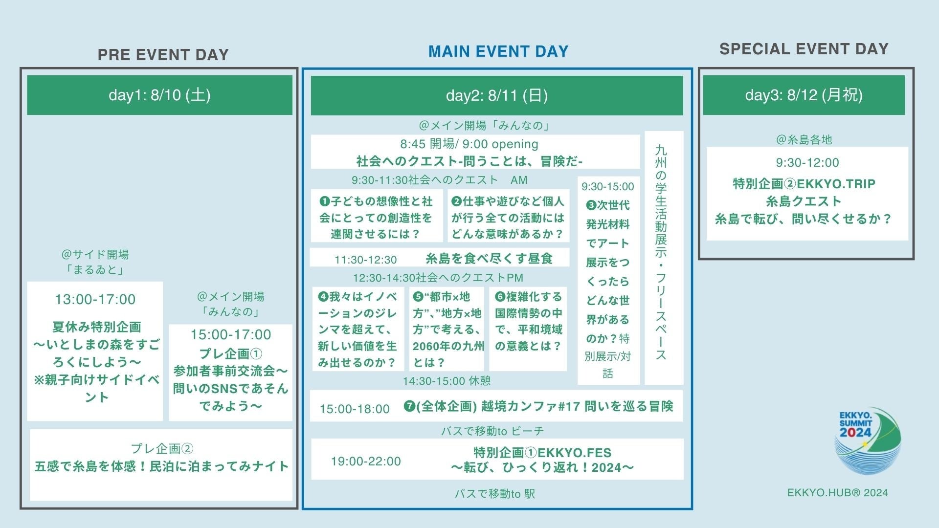 2024年度のEKKYO.SUMMITは、8/10(土)-8/12(日) 福岡糸島にて開催します!