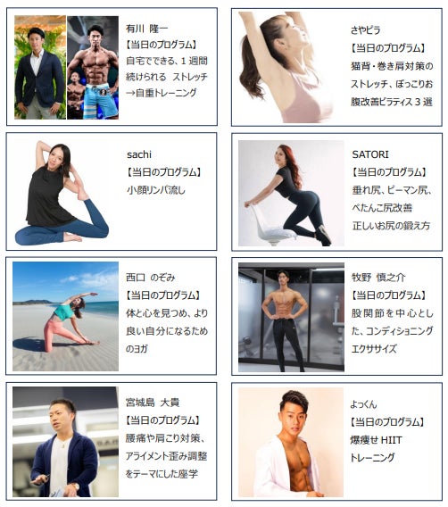 オンラインチャリティーフィットネス「Power Spot」出演者の紹介(あいうえお順)