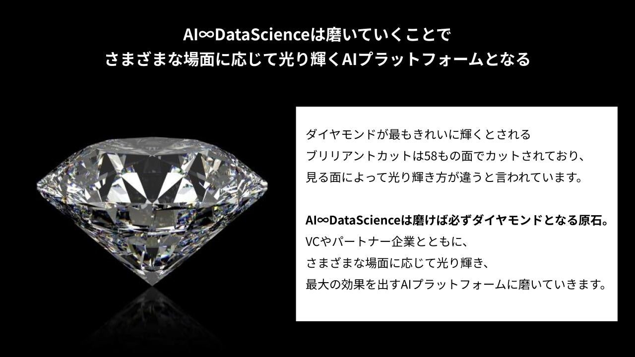 AI-D社はさまざまな場面でPoCを行い、SaaSを作っていくことで、AI∞DataScienceをブリリアントカットのダイヤモンドのように、見る面によって輝き方の違うAIプラットフォームとして磨いていきます。