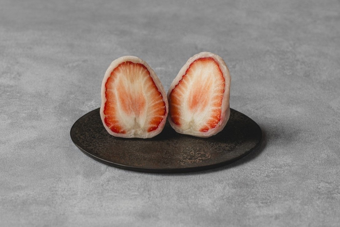 果実の芯まで赤いいちごをフリーズドライにした「いちごパウダー」で作ったいちご大福は、着色料や香料を一切使用していないため、いちご本来の酸味や風味が感じられます。