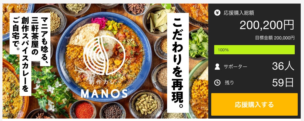 【公開20分で目標達成!初日で達成率400%超、Makuakeグルメランキング2位】行列必至の名店MANOSの「MANOSチキンカレー」人気の秘訣は"スパイスの応用力"