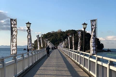 月1回 第一金曜日御鍬神社とその周辺を地域住民のみなさまと共に清掃。竹島観光客が清々しい気持ちで参拝できるお手伝いをしております。海洋汚染原因の空き缶やペットボトル(プラスチック)が三河湾に浮かぶの防いでおります。