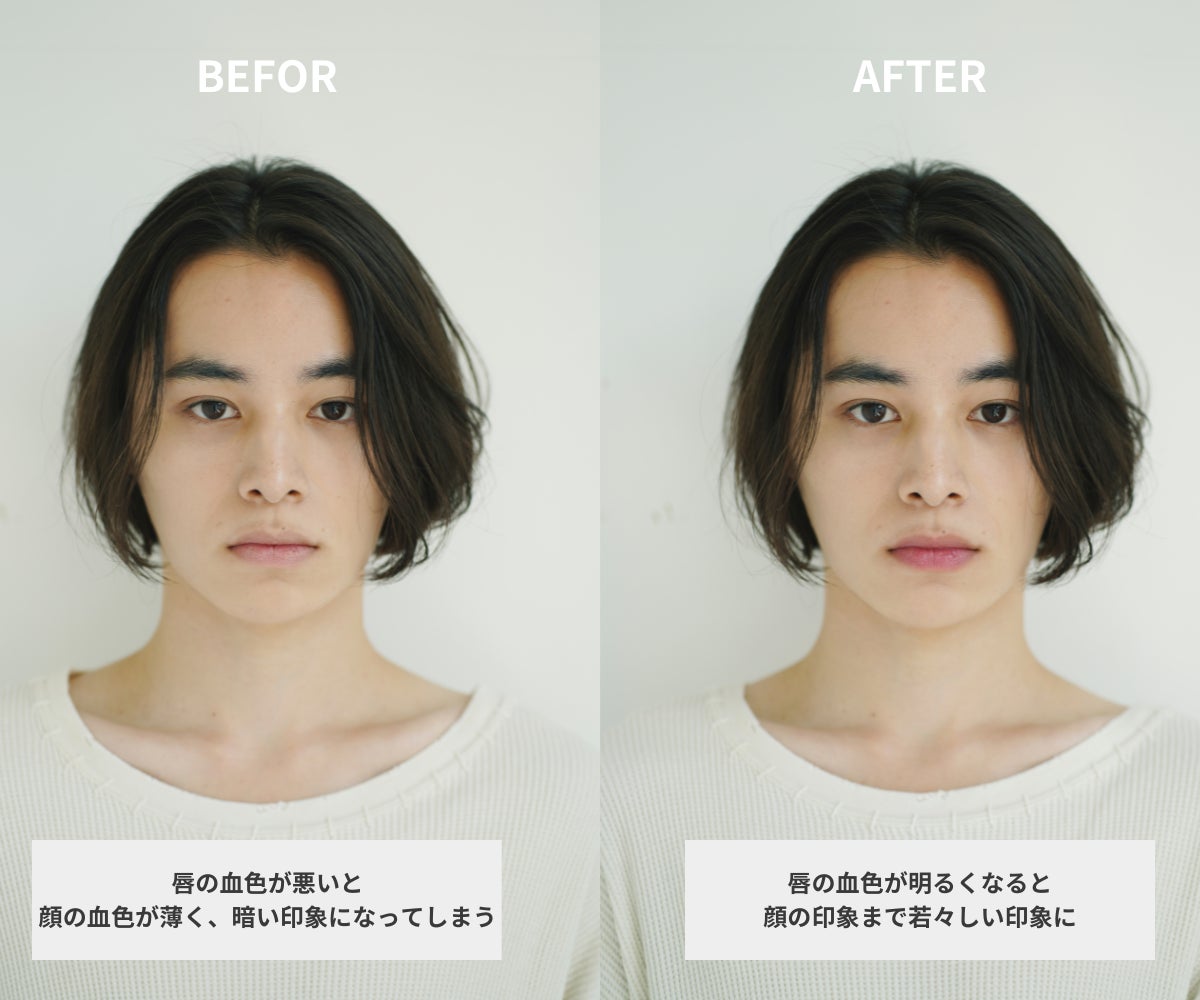 リップクリームとして使用するだけで唇だけでなく顔全体も1~2トーン明るく見えスタイリッシュな印象を与えることができます。