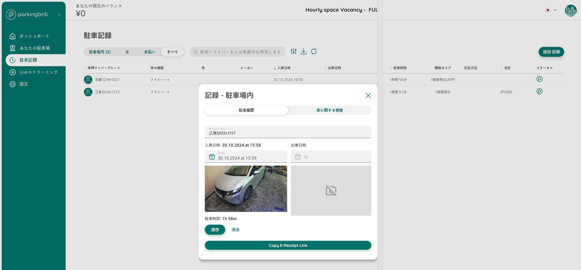 専用ウェブアプリケーションから、車両ナンバーや決済方法を登録することで、当社のシステムが入る駐車施設では ETC のようにゲートで止まることなく、入出庫することができます。商業施設で利用したレシートをアプリから読み込むことで、駐車料金の無料化やディスカウントを自動適用させることが可能です。
