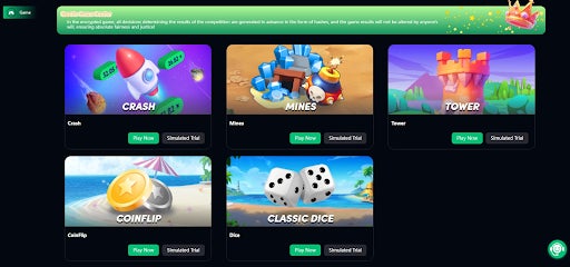 NFT以外、BiKing(ビーキング)が新たに開拓している分野がGamefiとなります。現段階、Gamefiモジュールにリリースされているゲームは、クラッシュ、マインズ、タワー、コインフリップ、クラシックダイスとなっていますが、基本的にミニゲームがメインになっています。