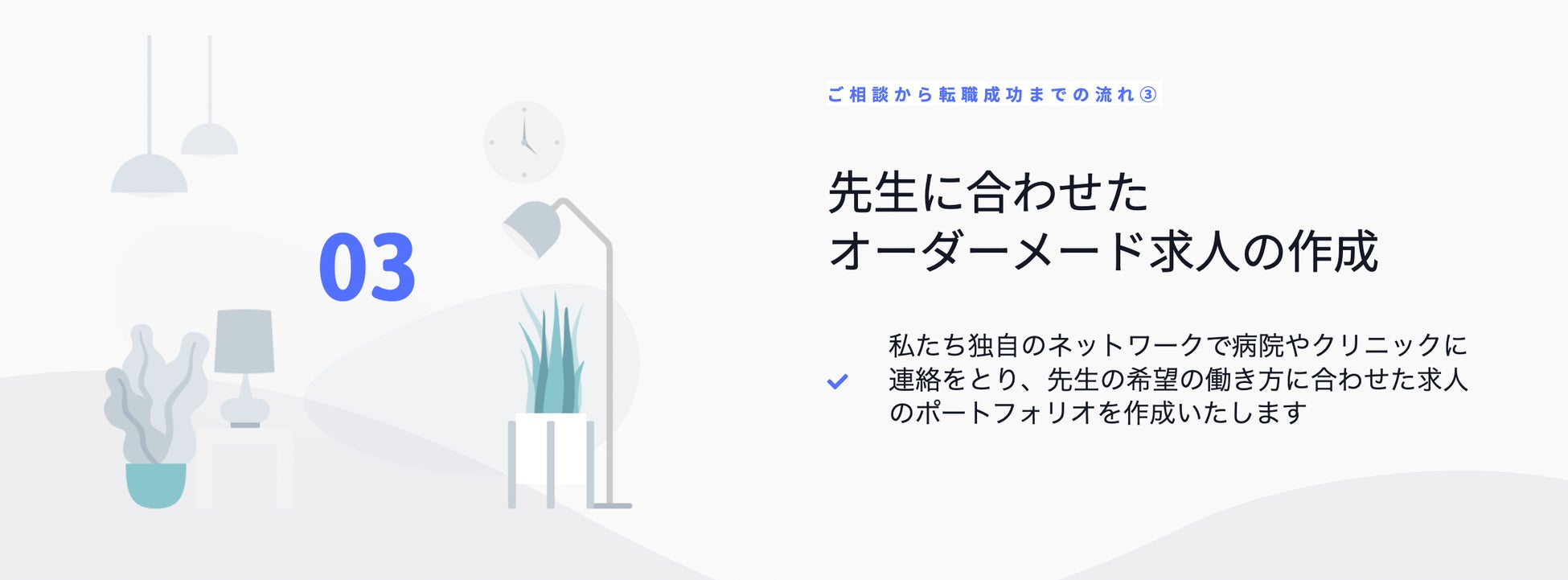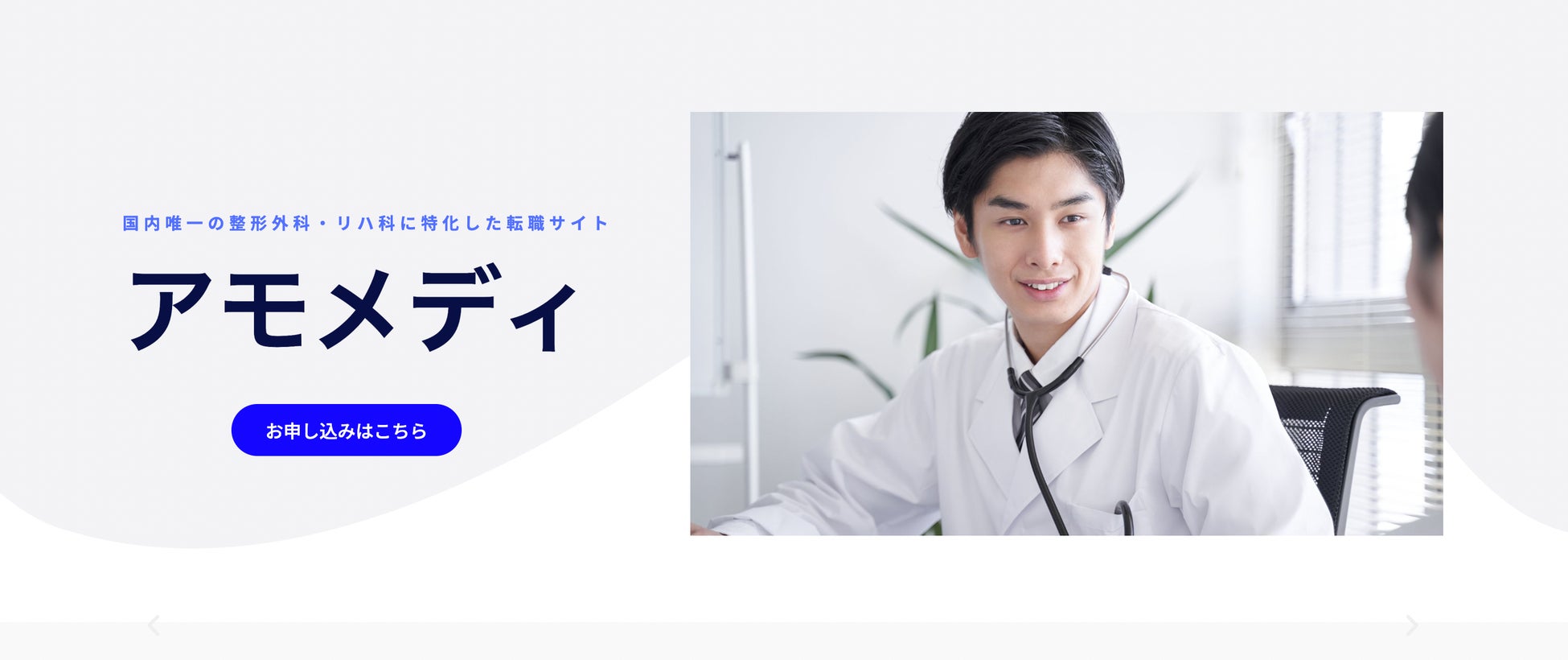 アモメディは他社と違い、整形外科およびリハビリテーション科に特化している転職サービスのため、一人一人の先生に合わせたオーダーメイドの求人が可能です。