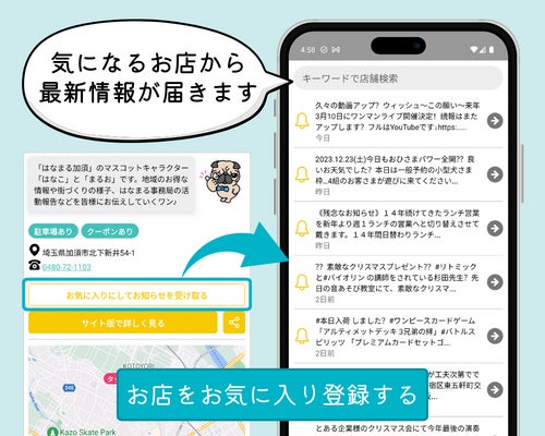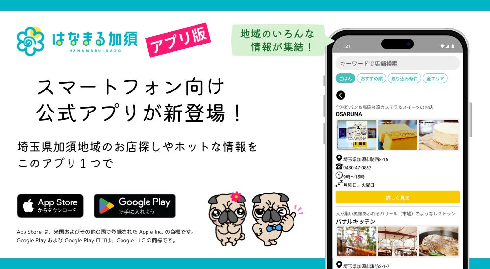 また、はなまる加須のアプリ版も同時にリリースされました。このアプリは、サイトの主要機能をスマートフォン用アプリケーションとして提供しています。このアプリによって、地域の様々な情報をいち早く、より身近に住民へ届けられるようになります。