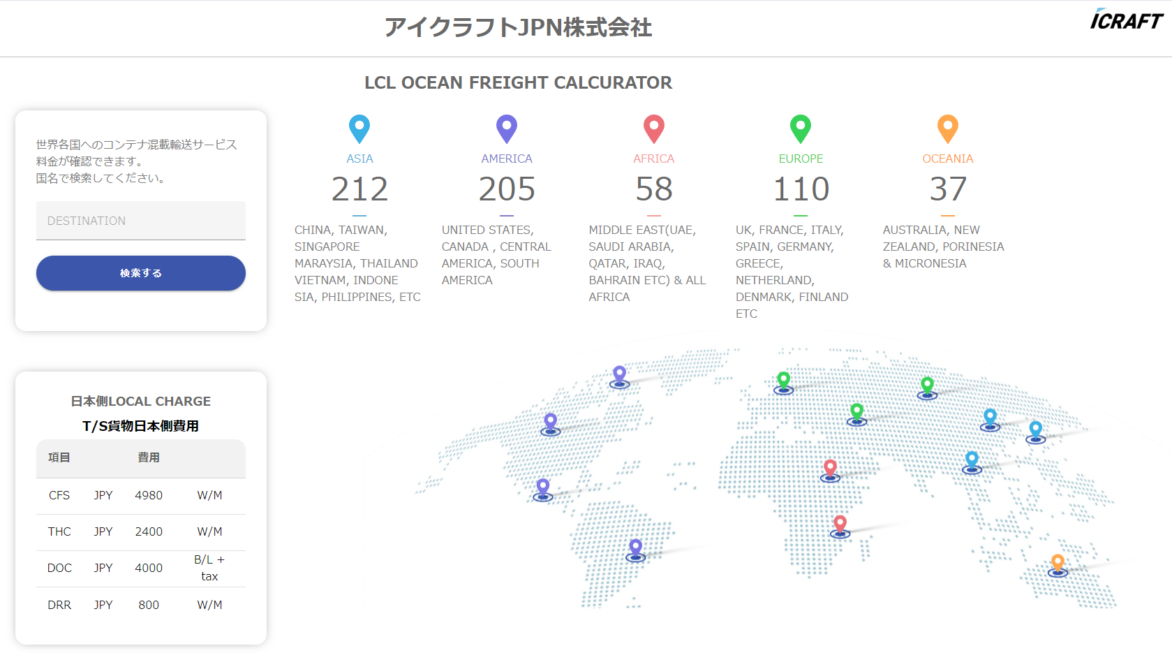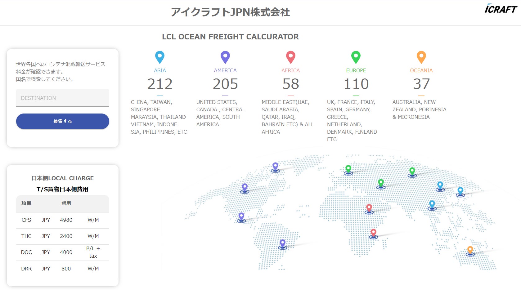 コンテナ混載(LCL)サービスサイトの開設・アイクラフトJPN株式会社
