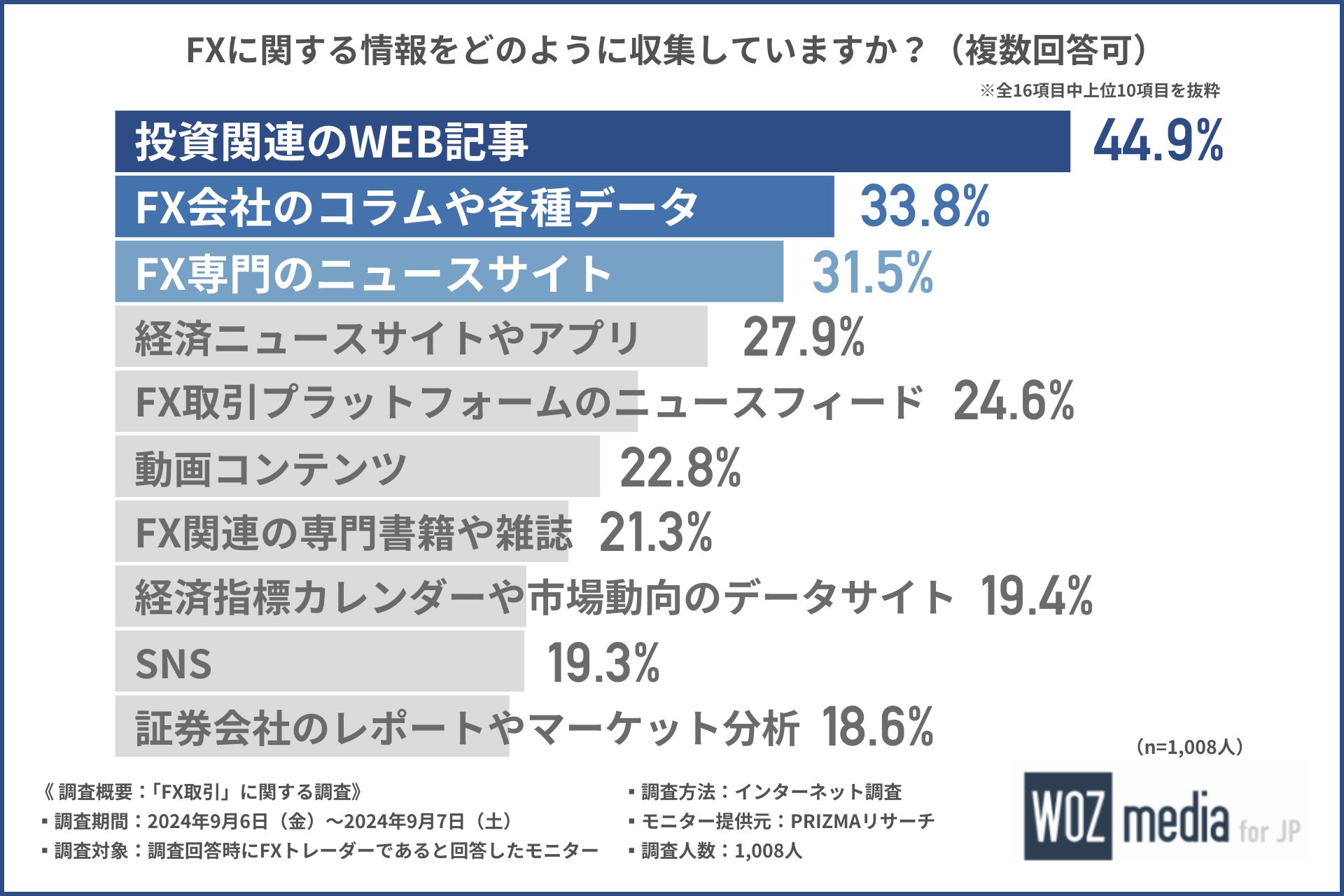 投資関連のWEB記事が主な情報源となっており、FXトレーダーはインターネットを活用して幅広く知識を得ていることが明らかになりました。
