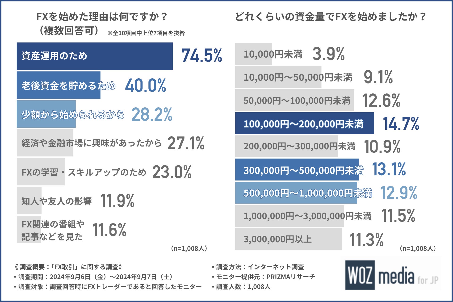 合同会社WOZ(所在地:東京都渋谷区、代表社員:小畑 和彰)は、FXトレーダーを対象に「FX取引」に関する調査を行いました。