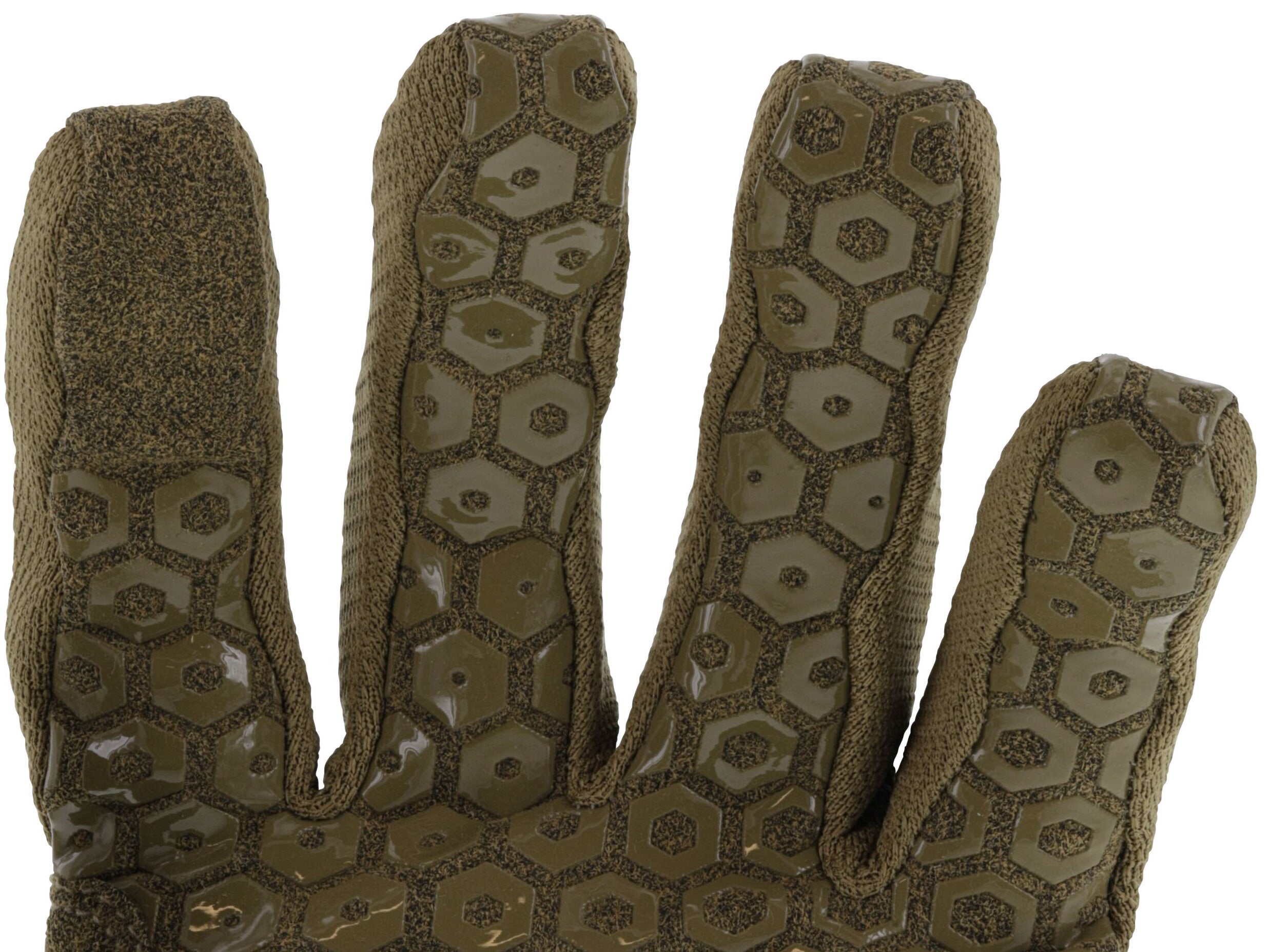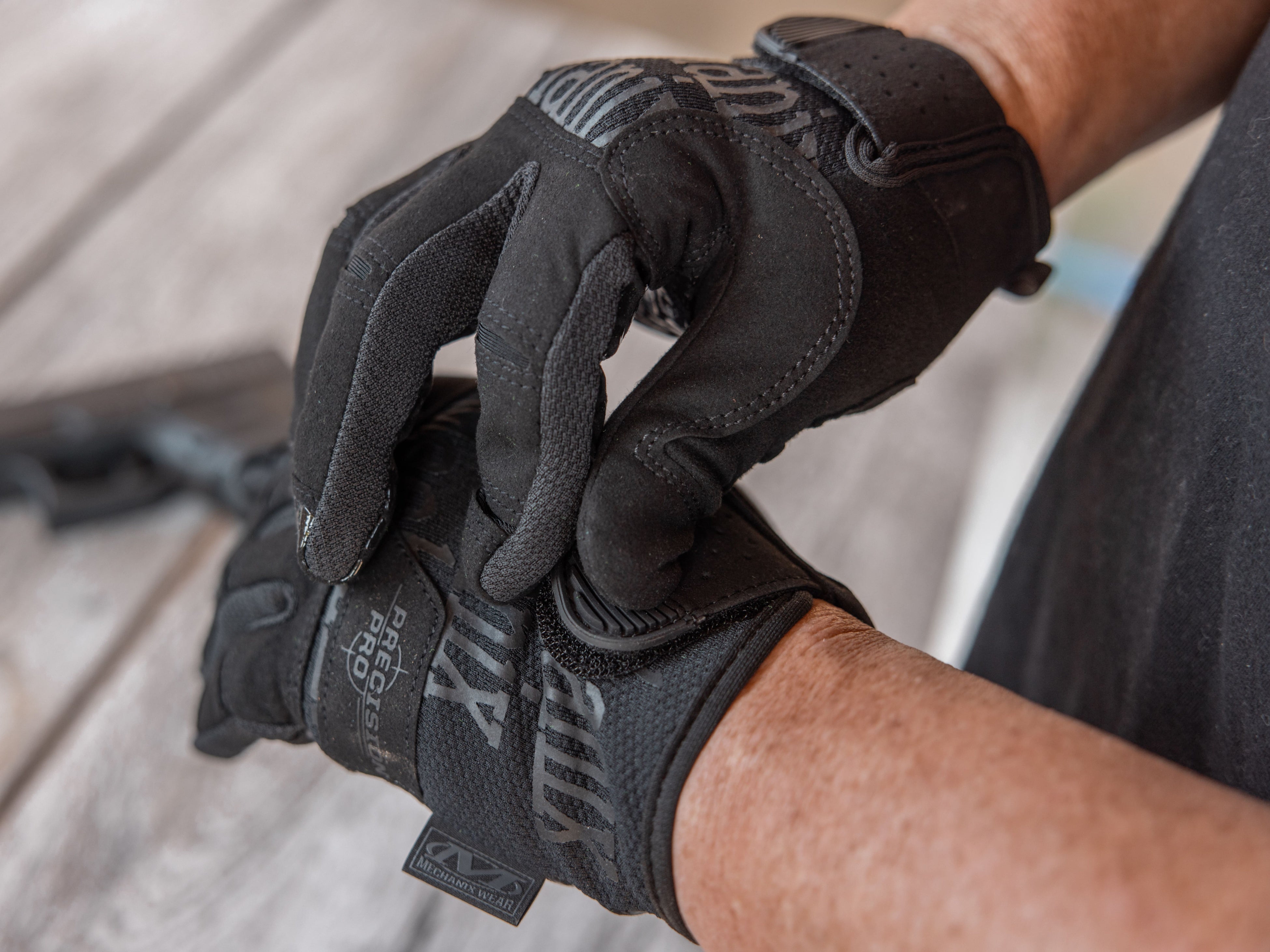 プレシジョン プロは、いかなる状況においても優れたハンドプロテクションと高いパフォーマンスを発揮します。手の平に採用された粘着性のあるPadlock™シリコングリップパターンが、火器システムなどを握る時の制御性とグリップ力を飛躍的に向上させました。指のパターンに砂時計型指構造を、小さな穴(アイレット)の柔軟なつなぎ目を指関節部分に採用することで、手首から指先の柔軟な動きを可能にし、指関節部分の自然な曲がりを可能にしています。また、グローブの指先を軽くカーブさせ、シームレスな設計にする巻き込み式裁縫パターン(ロールオーバー・フィンガーティップ)が耐久性を高め、非常に精密な感触と高い操作性を提供します。